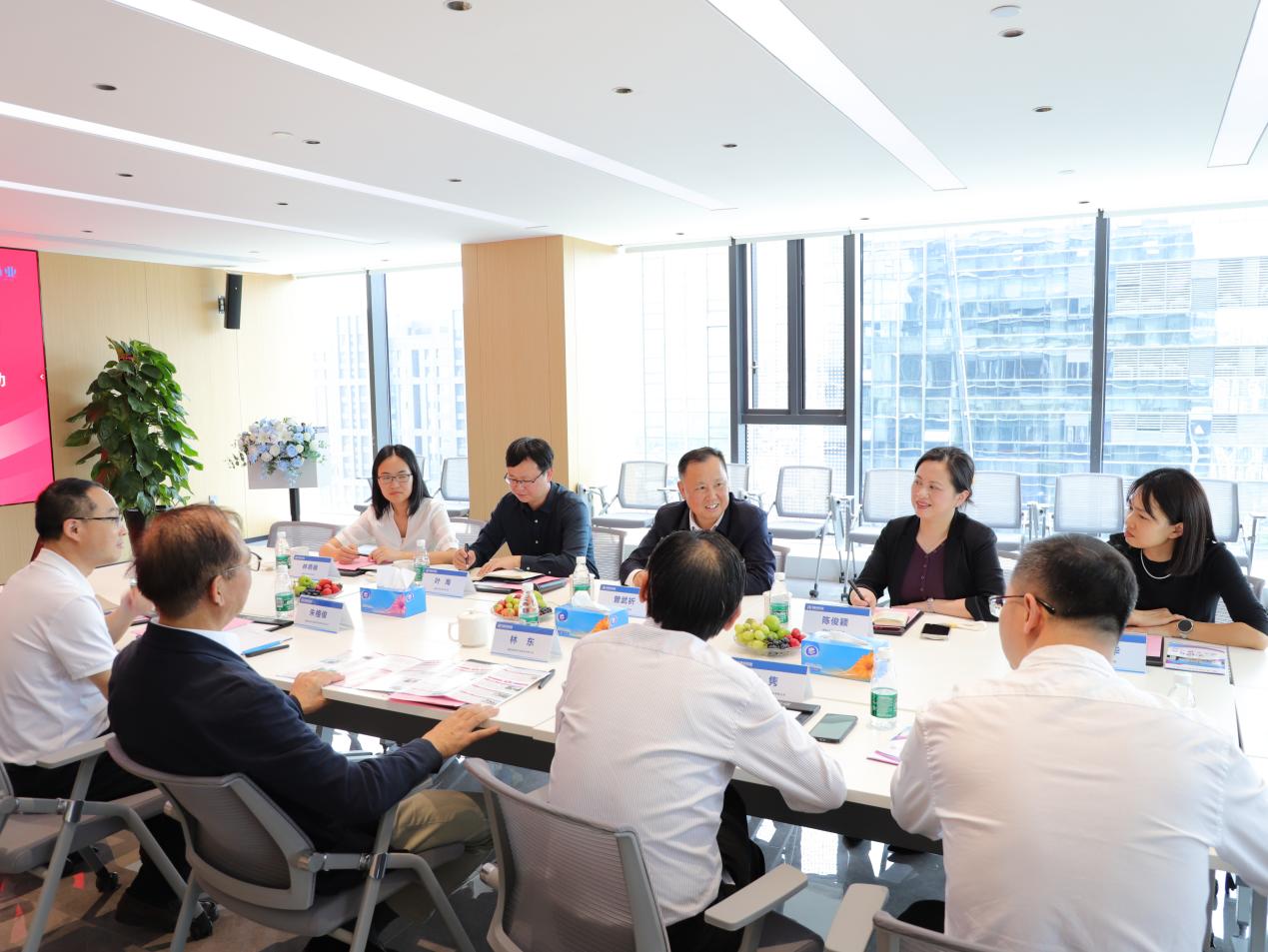 李国平董事长充分肯定了学校毕业生的专业素养与实践能力,并提出深化校企合作的期望。曾武祈表示,学校将积极吸纳企业建议,推动课程内容与岗位技能精准对接,同时希望广生堂提供更多实习就业机会,共建产学研协同发展平台。会后,校方一行参观了企业员工沙龙区及研发实验室,深入了解企业创新研发情况与人才培养环境。
