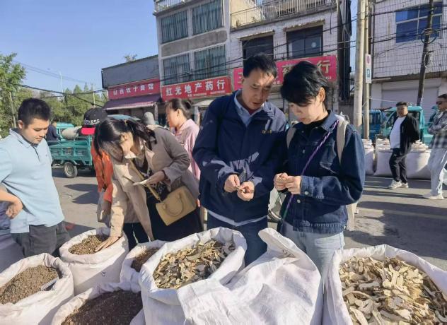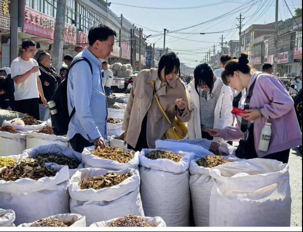 同时,团队前往全国最大的中药材饮片交易市场。教师们仔细观察不同药材的形态、质地,询问商家关于药材产地、功效及市场行情,了解中药材流通过程及市场需求动态。为更全面了解市场,团队在企业带领下奔赴十八里药材早市,为教学与实践相结合积累了鲜活素材。