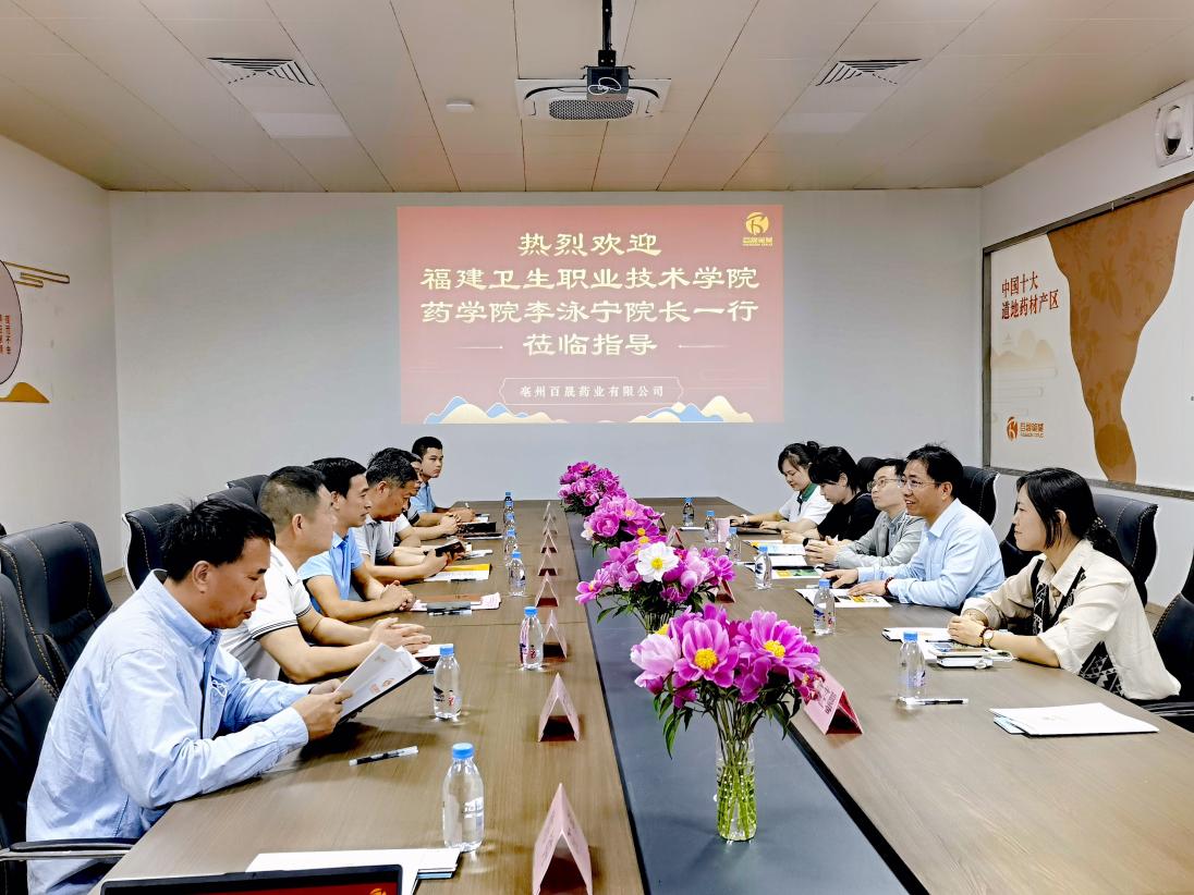 在企业负责人的陪同下,药学院团队一行参观了亳州百晟药业有限公司的生产车间及质检部门。在参观过程中,企业负责人详细介绍了中药材的生产工艺、质量控制体系以及先进的生产设备,让团队成员对现代化中药生产流程有了更直观的认识。随后,企业还展示了近期自主研发和生产的丰富多样的养生产品,包括各类中药提取物、养生茶、保健品等。这些产品充分展示了企业在中药养生领域深厚的研发实力与创新成果,也让团队成员对企业在中药领域的多元化发展和市场拓展有了更深入的了解。