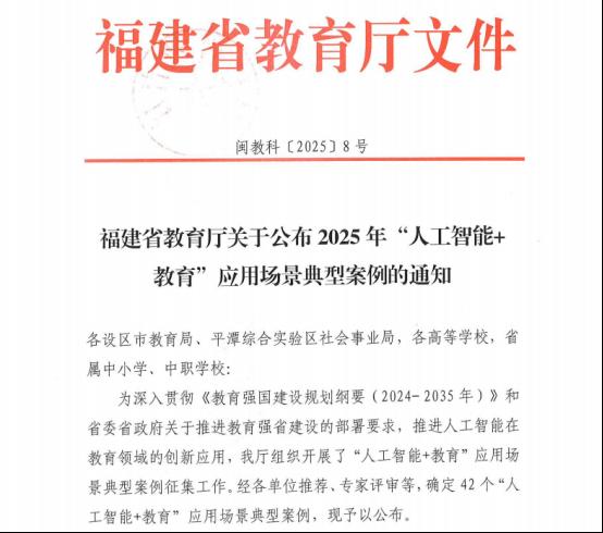 近日,福建省教育厅公布2025年“人工智能+教育”应用场景典型案例名单。开云医学技术与工程学院叶靓玲老师申报的《AI驱动、数智赋能-智能医疗装备技术专业智慧教学平台》案例成功入选。