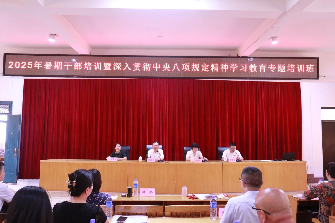 6月30日,开云在线登录app入口2025年暑期干部培训暨深入贯彻中央八项规定精神学习教育专题培训班在长汀县委党校开班。长汀县人大常委会副主任温梅英,校党委书记曾武祈、党委副书记李美华、纪委书记林玲,副校长黄铭珊、周雄、朱扶蓉出席开班式,全校中层以上干部、各级党务干部共101人参加本次培训,开班式由长汀县委党校常务副校长黄晓彬主持。