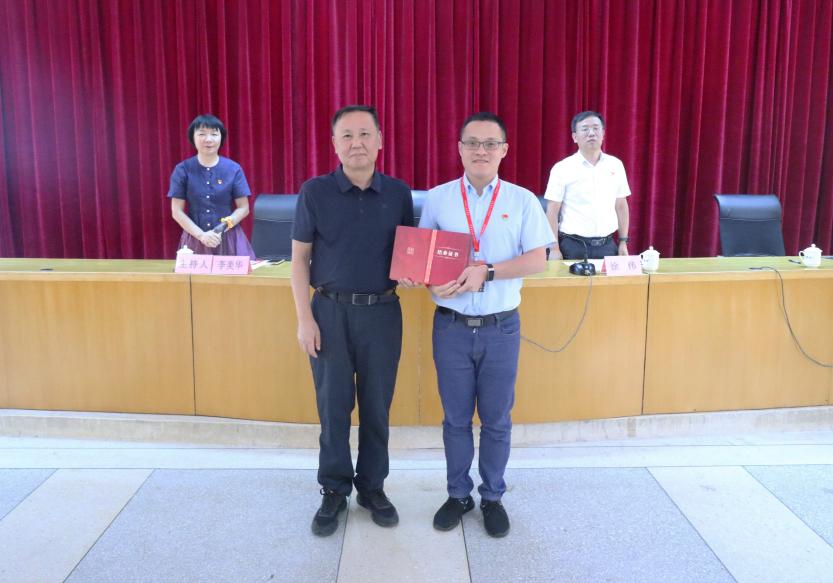 校党委书记曾武祈为培训班班长、学员代表黄曦颁发结业证书。