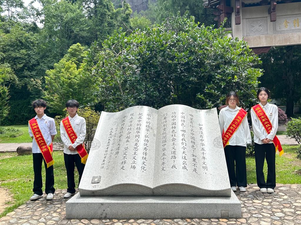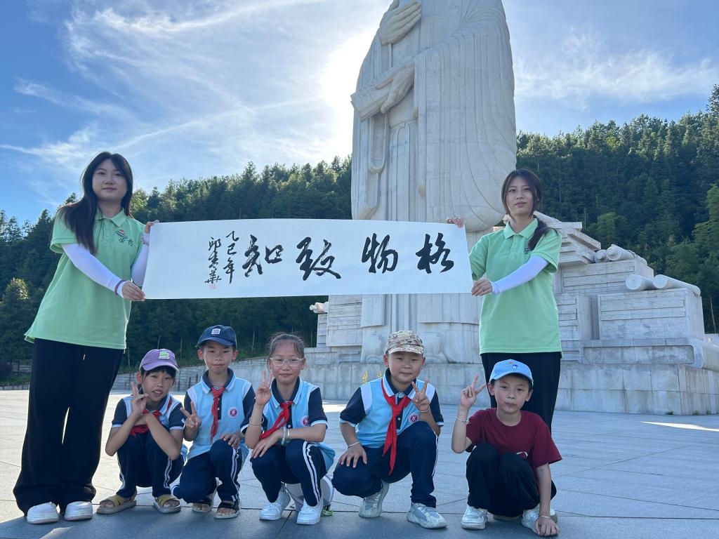沿着习近平总书记的足迹,徒步七公里,走进朱熹园。古木葱茏间,实践队小队员立于朱熹像前,清朗诵读《爱莲说》,让千年廉韵在童声中回响。追寻领袖往昔步履,感悟思想伟力,厚植文化自信,让文化传承与时代精神同频共振。