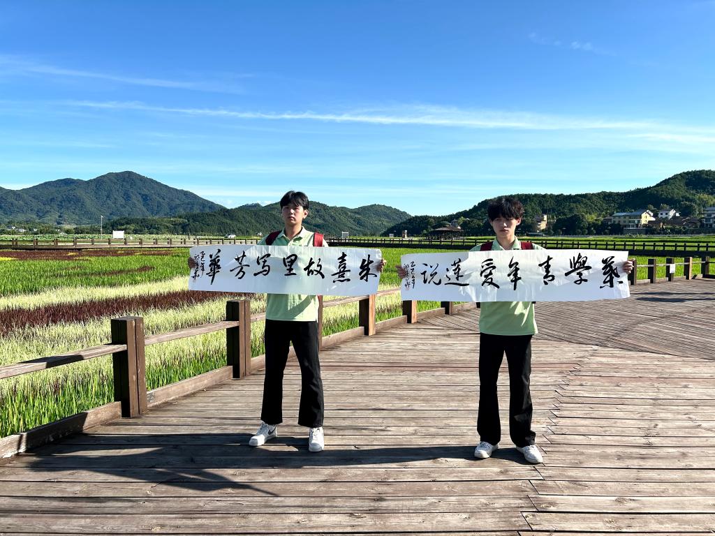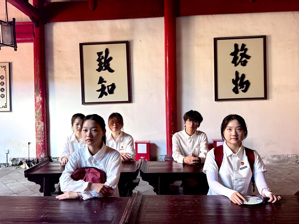 在崇阳溪岸边,“荣药”实践队开启朱熹文化探寻之旅。队员们走进朱子讲学旧址,深入学习理学经典,感悟“格物致知”的深刻内涵;走访古宅遗迹,聆听历史故事,追寻朱子文化脉络。诚邀书法老师挥毫写下此次“三下乡”朱子文化主题,让传统文化在实践中绽放新光彩。