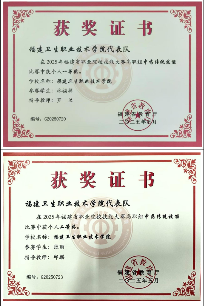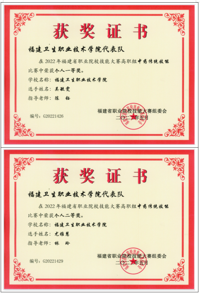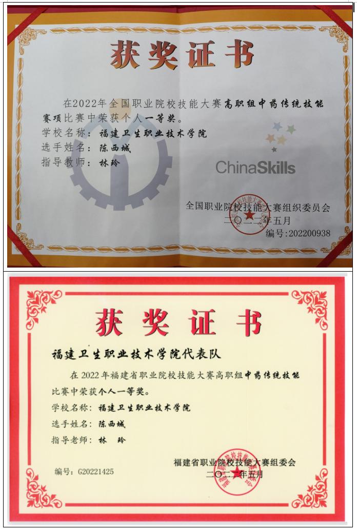 中药学专业学生荣获2022年全国职业院校技能大赛高职组中药传统技能赛项比赛中荣获个人一等奖 |