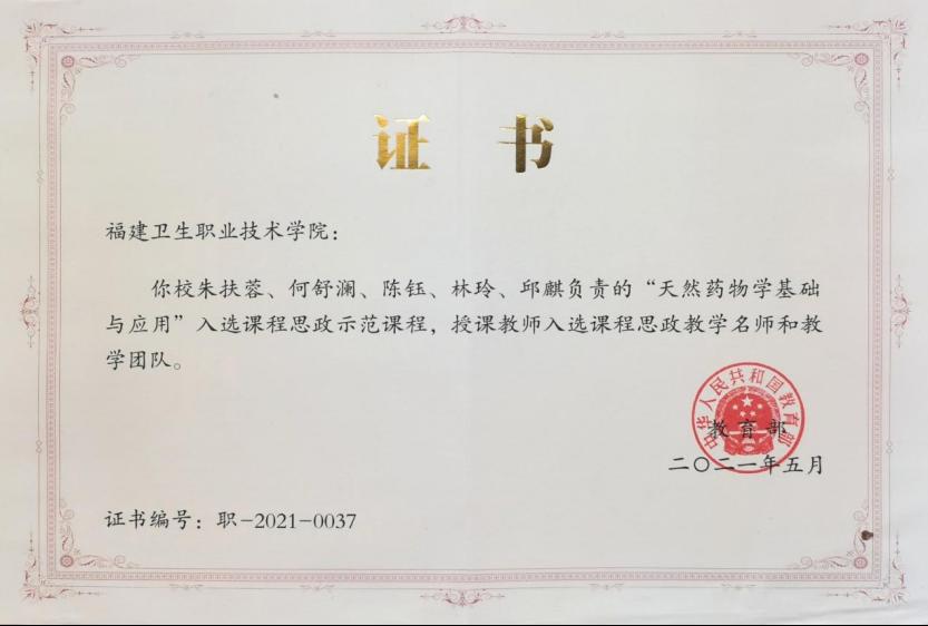 《中药学、药学专业校企协同培养技术技能型人才培养模式的探索与实践》,获2017年福建省职业教育教学成果一等奖 |