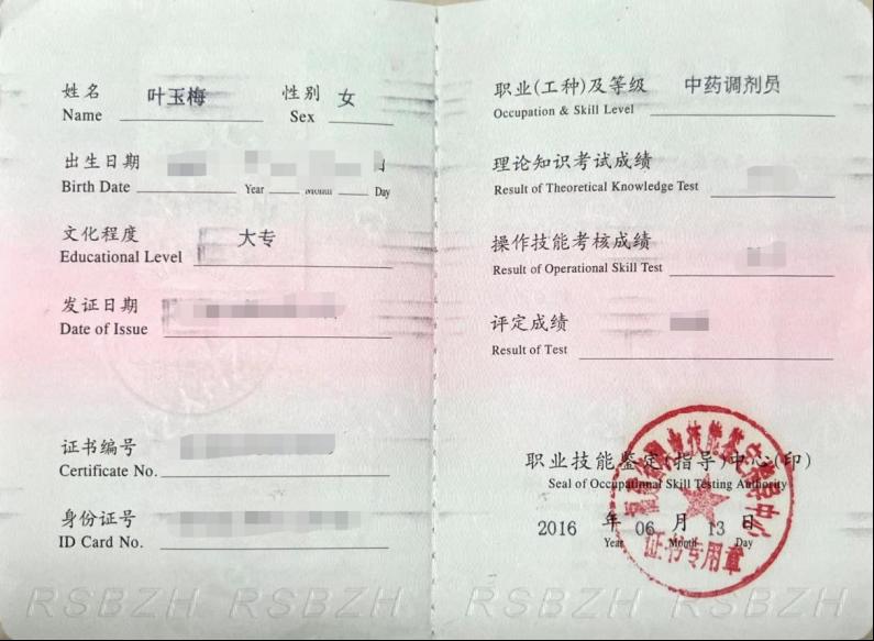 中药调剂员证书