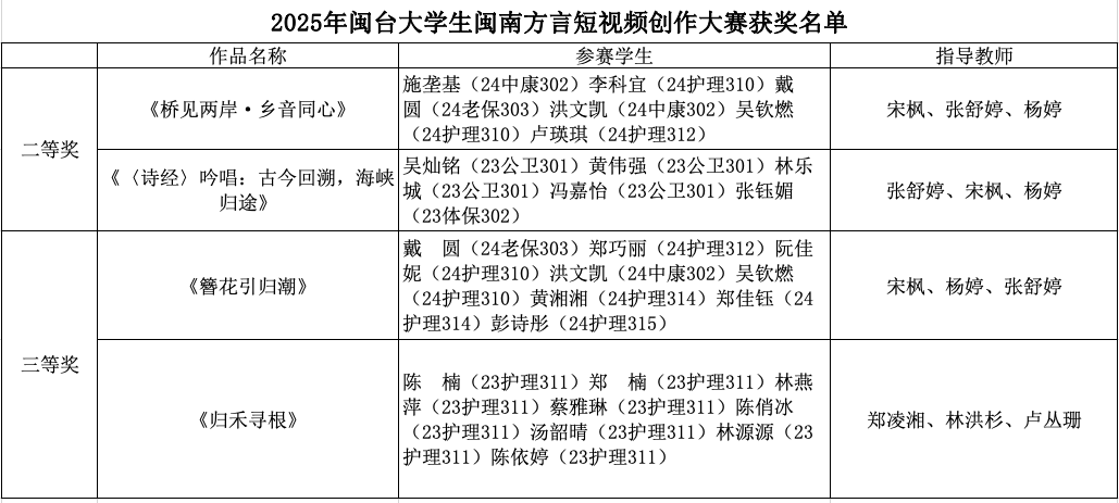 近日,以“传承乡音 两岸连心”为主题的闽台大学生闽南方言短视频创作大赛圆满落幕。比赛汇集了厦门大学、福州大学、福建师范大学等省内知名高校的众多优秀作品,本科院校与高职院校同一赛道,同台竞技。开云学子凭借出色的作品斩获佳绩,荣获二等奖两项,三等奖两项。