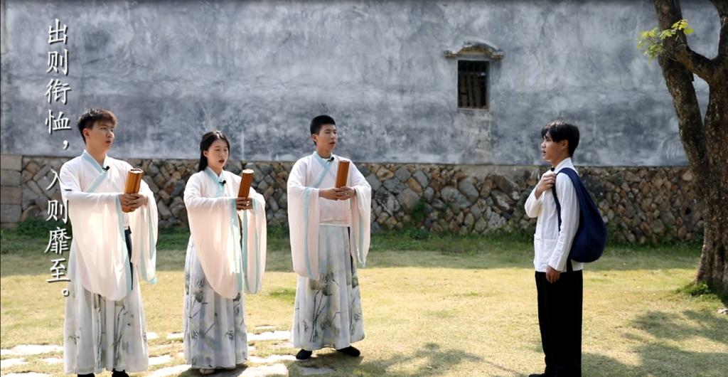 二等奖作品微视频《〈诗经〉吟唱:古今回溯,海峡归途》以吟唱形式,共溯文化根源。参赛学生将《诗经》与闽南方言巧妙融合,以吟唱演绎跨越千年的文化对话。语言庄重典雅,充满古诗词韵律美。运用丰富闽南方言词汇和独特发音技巧,让古老《诗经》焕发生机,古今交织,寓意两岸文化同根同源。