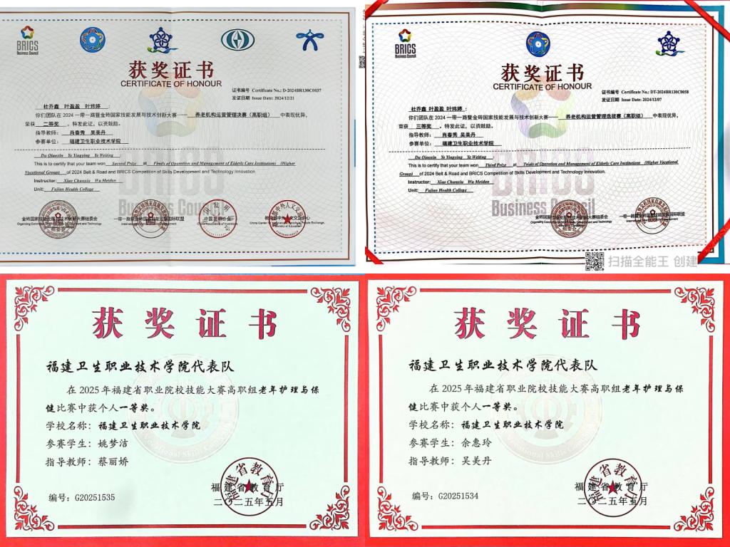 近年,学生参加养老专业技能大赛,荣获省赛一等奖2项、“一带一路”暨金砖国家技能发展与技术创新大赛区域赛团体三等奖1项、决赛团体二等奖1项。