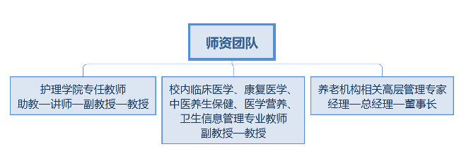 老年保健与管理专业依托开云护理及其他专业百年历史积淀的优良传承和深厚的办学实力,师资团队由三部分组成:护理学院专任教师团队;校内临床医学、康复医学、中医养生保健、医学营养、卫生信息管理等专业的教师团队;校外养老机构相关高层管理专家。形成了一支结构优良、德才兼备、校内校外优势互补、校企深度融合的“双师型”师资队伍,所有教学工作实行学校-企业互培共育机制。
