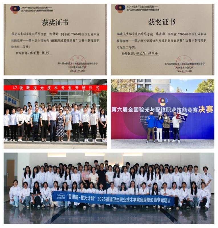 眼视光技术专业创办于2012年,旨在培养双眼保健技术、专业验光配镜技能及服务理念于一体的“医工商”复合型眼视光技术人才,为福建省高水平高职专业群重点建设专业。专业有优良的专兼职教师团队,专业课程《中级验光师》获批“福建省优秀继续教育网络课程”。 专业重视技术技能操作,2021年获批眼镜验光员和眼镜定配工职业技能等级培训和鉴定考核站点获批,并面向社会开展培训和考核认定工作。专业积极依托多元合作,深化协同育人,与福州东南眼科医院、华厦眼科医院集团、福州爱尔眼科医院、福建医科大学附属协和医院、福州市儿童医院、福州市第一医院等十几所行业单位开展合作,共同完成实践教学活动,2016年获批“福建省第二批现代学徒制试点项目”,2017年获批“福建省职业院校产教融合示范专业点”,2021年获批开展“二元制”人才模式培养,2023年被确定为首批福建省儿童青少年近视防控基地。2024年学校两名教师被福建省教育厅聘为福建省儿童青少年近视防控省级宣讲团成员。
