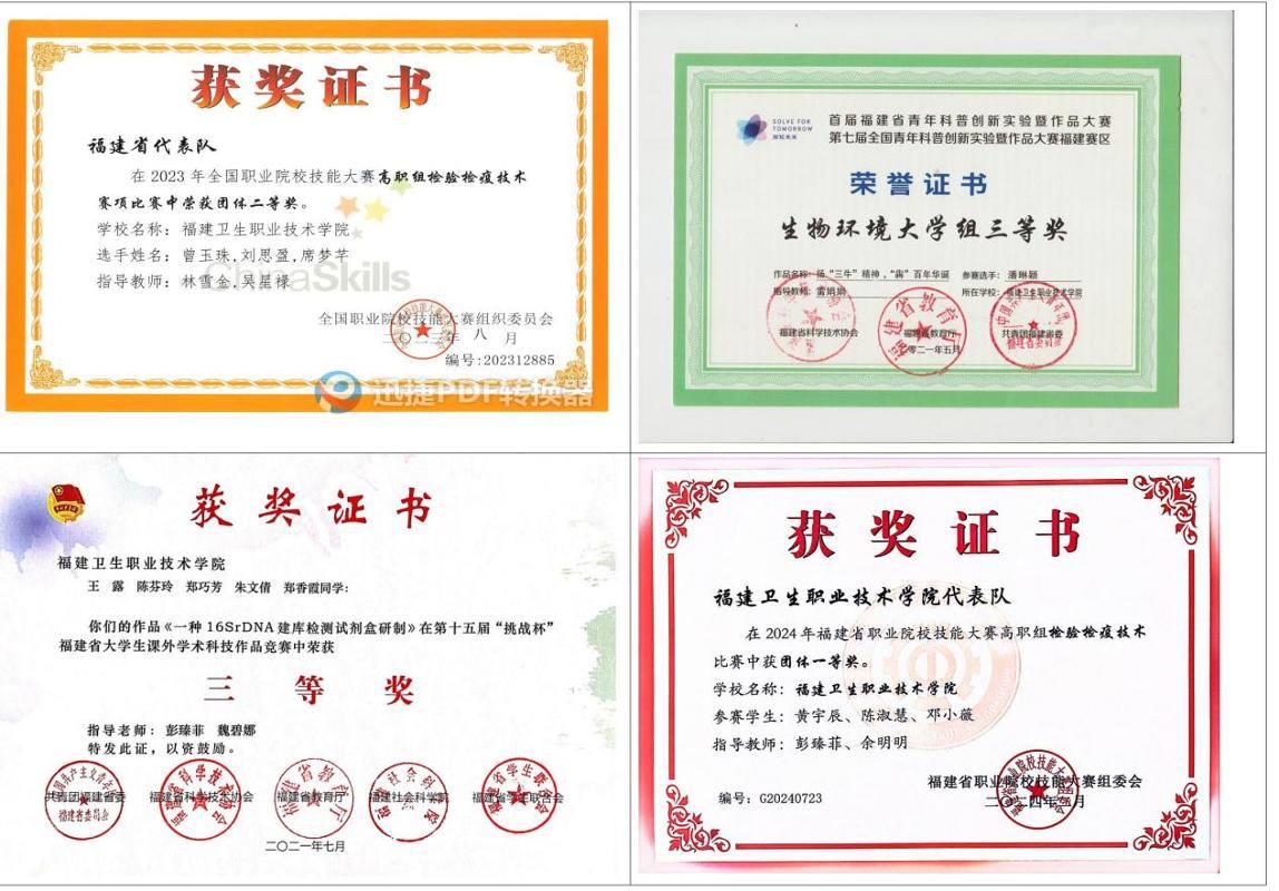 医学检验技术专业于1954年创建,为福建省首次开办此专业,办学底蕴深厚,优势特色鲜明。专业旨在培养能够从事临床医学检验、输(采供)血、病理技术等工作的高素质技术技能型人才,为省级示范校重点建设专业、中央财政支持专业建设项目、福建省高水平高职专业群核心建设专业、全省高等学校创新创业教育改革试点专业、省级职业教育重点建设项目。专业拥有一支优质”双师型”教师队伍,有省级专业带头人3名,并聘请临床检验经验丰富的医院专家作为兼职教师,团队教师2020年、2022年分获福建省职业院校教师教学能力比赛一等奖、二等奖。专业拥有较完备的实训实践平台,建有医学检验实训中心,其中实验实训室28间,实训设备1410台,是专业教学、科研、技术服务结合的实训中心,同时设立60多家校外实践教学基地。