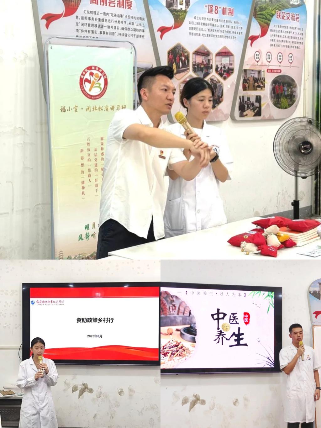 6月底,医学院“乡韵医心”实践队师生走进南平市松溪县茶平乡,开启为期五天的暑期“三下乡”实践活动,实践队用脚步丈量乡土,以专业服务民生,于基层画卷上书写青春篇章。活动涵盖乡村医疗卫生调研、爱心体检义诊、非遗文化探寻、健康知识宣讲及主题党日教育等领域。队员们通过专业调研了解乡村医疗现状,发挥专业技能开展体检和义诊服务,在非遗传承中感受文化魅力,用通俗语言传播健康知识,于党日活动传承红色基因,以实际行动赋能乡村振兴。从医疗调研到红色精神追寻,从健康服务到文化技艺感知,每一站都镌刻着医学生的责任与担当。
