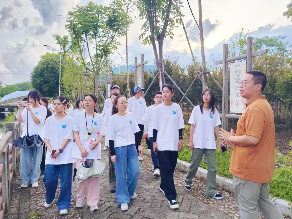 梅口埠古商道旁,碧水悠悠诉说着往昔的繁华。古树下,苏维埃时期的标语依稀可辨,无声传递着革命先辈的热血信仰,历史与自然交融,织就独特文旅画卷。实践队员化身“河小禹”,溯梅口埠碧水而行。“明月松间照,风静听溪流”,眼前的生态风光,让大家深知文旅融合中生态守护之责,让绿水青山与红色历史、浪漫古渡共同成为乡村文旅名片。