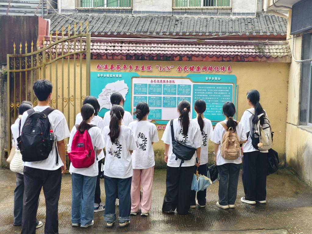 当“乡韵医心”实践队的足迹踏入茶平乡,青春热忱便与医者仁心交融,共绘乡村振兴图景。欲解基层医疗之困,必先察其根源。实践队联合茶平乡宣传委员张世鑫、卫生院院长谢金标围绕卫生资源配置、居民健康需求、“4+N”全民健康网格化服务体系等当地医疗最关注的问题进行深入交谈,并实地走访乡卫生院。这场调研,让队员们跳出课本局限,触摸到基层医疗的真实样态,更加深刻地认识到因地制宜创新服务对于乡村医疗发展的重要意义。
