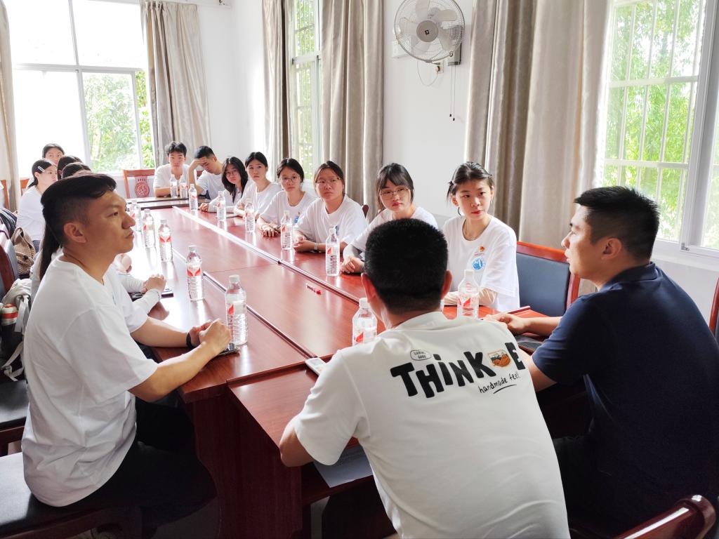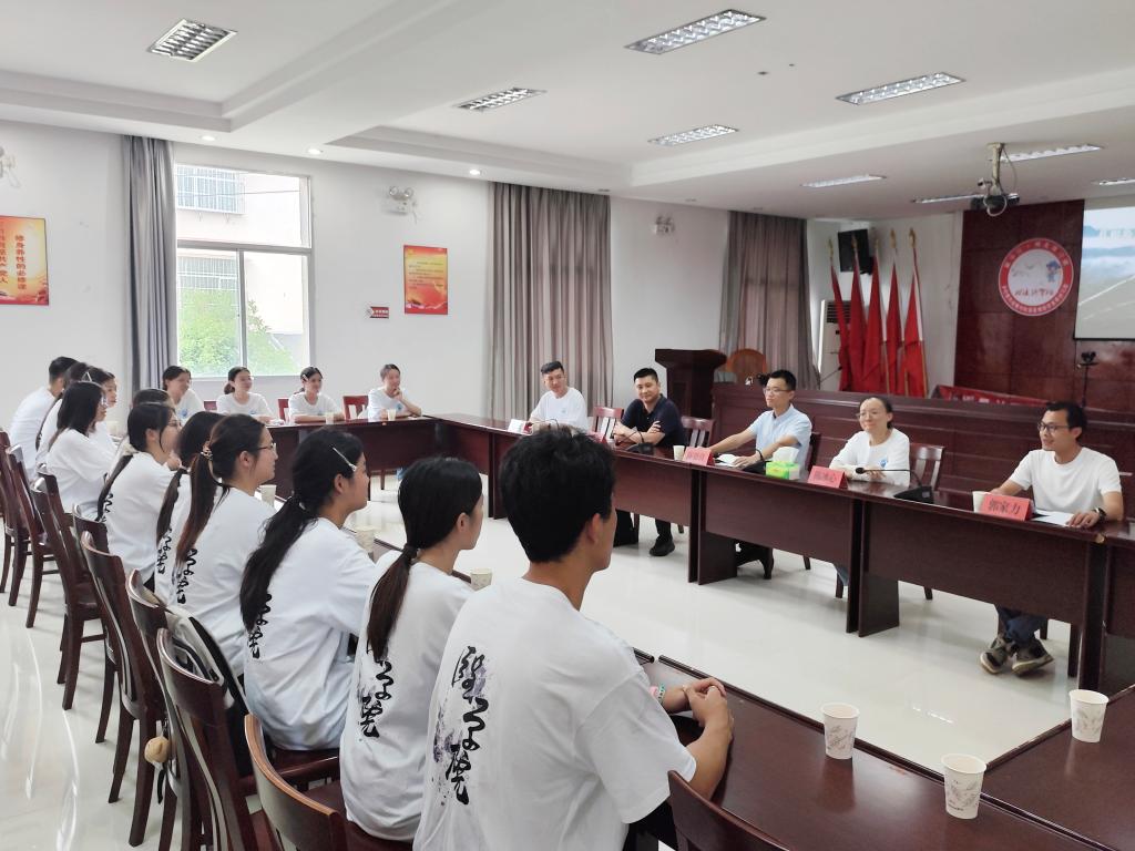 在茶平乡政府会议室,2008级临床医学专业校友陈贤清乡长,以一堂生动的乡村振兴党课为引,深情回望从医学生到基层建设者的蜕变之路,生动展现了在党建引领下,乡村产业蓬勃升级、民生福祉持续改善的辉煌成就。他以扎根基层的实践,向学弟学妹们有力诠释了红色力量驱动乡村发展的核心动能。郭家力队长则立足当下,倾情分享职业生涯规划智慧,为面临就业选择的医学生拨开迷雾、指明方向。这场校友间对话,不仅是思想启迪与规划引领的双重赋能,更是一场医者仁心与使命担当的代际接力。队员们从学长们的足迹中汲取力量,人生的奋斗目标愈加清晰,为实践队注入了澎湃的前行动力。