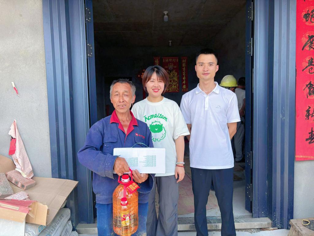 畲村受灾脱贫户家中,医学院党委副书记刘明珠带队,实地走访了四户脱贫户,为他们送去牛奶、食用油等生活物资。同时在村民家中进行福建助学政策宣讲,详细介绍了助学贷款的申请条件、流程及还款政策,助力村民更好地了解和利用教育资助渠道。这次亲切的入户交流,拉近了实践队与村民们之间的距离,进一步强化了队员们对乡村振兴和教育帮扶的认识。