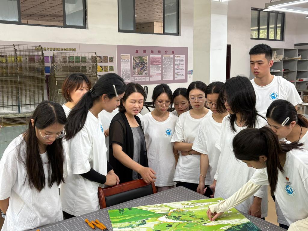 踏入松溪版画馆,岁月匠心在木板间流淌。队员穿梭于展厅长廊,目光掠过古朴雅致的山水图景、灵动鲜活的民俗画卷,于刀木交织的艺术语言中,感受传统美学与乡土风情的共鸣。这场沉浸式文化之旅,让青年心中播撒下传承种子。以青春笔触续写千年文脉,让非遗薪火随时代脉动不息。