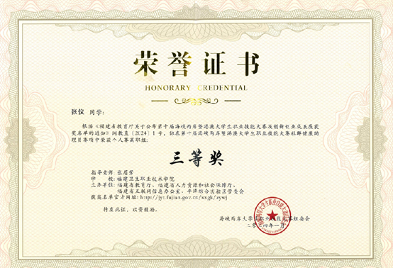 第十届海峡两岸暨港澳大学生职业技能大赛社群健康助理员三等奖