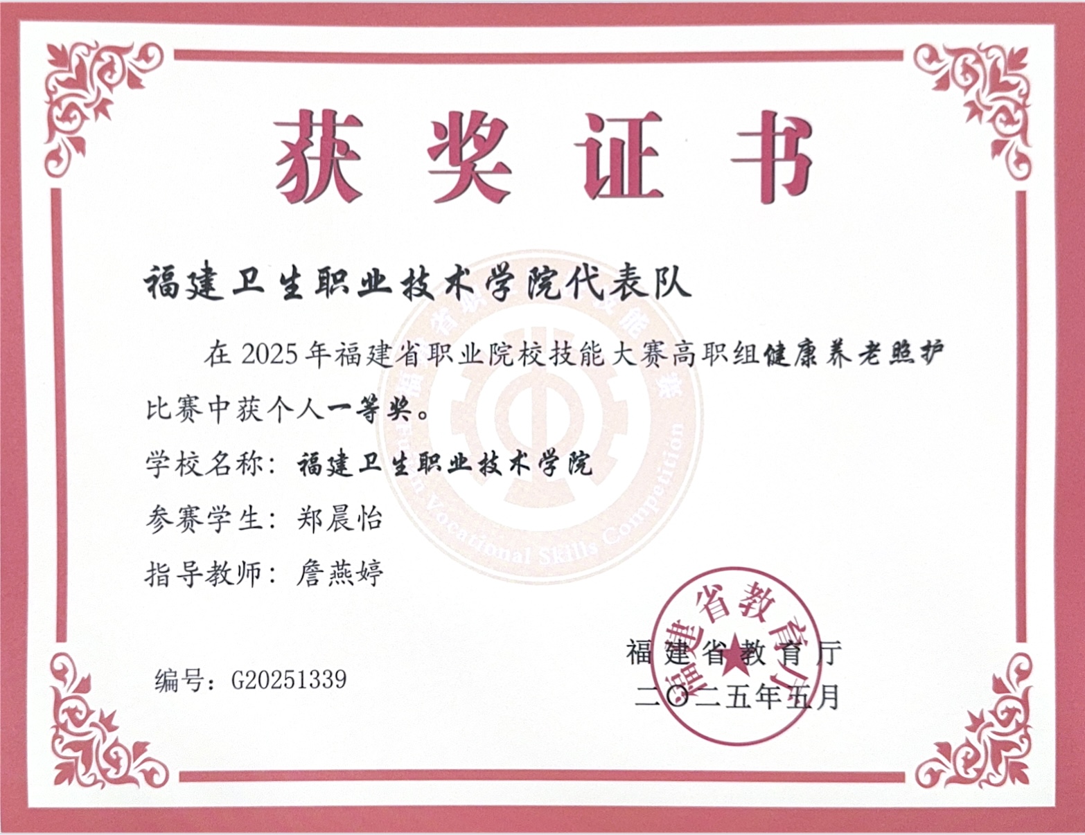 获福建省职业院校技能大赛健康养老照护赛项,一等奖2项。 |