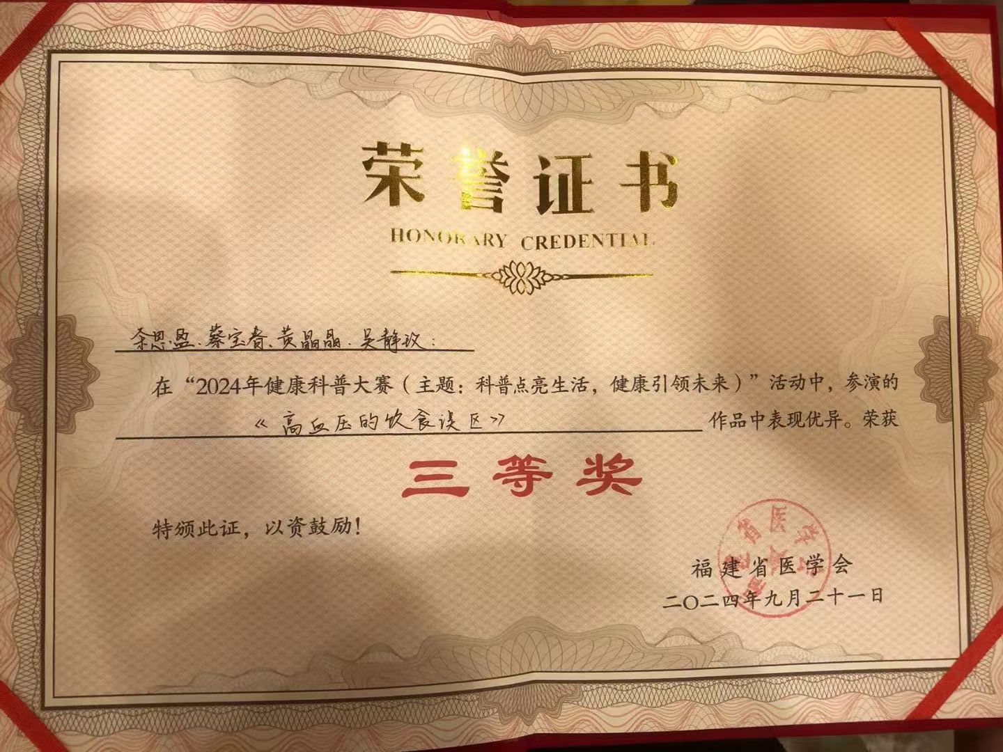 获福建省第六届“全民营养周”系列活动之线上科普作品大赛,特等奖、一等奖、二等奖各1项 |