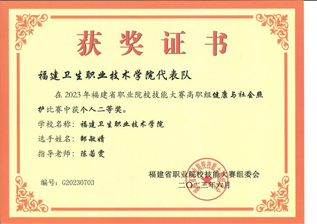 学院以现代大健康产业为核心,构建了专业群体系,并深入挖掘各专业的内在价值,塑造了“尚美行健、塑德启智”的文化特色。学院创新性提出“三色光”建设工程,以党建创新和队伍建设为着力点,深化“红色”精神引领铸魂工程;以专业提升和成果培育为发力点,推进“绿色”守正创新融合工程;以人才培养和事业发展为落脚点,打造“蓝色”整合优化发展工程。近年来,学生荣获全国职业院校技能大赛高职组健身指导比赛团体三等奖、全国大学生计算机应用能力与信息素养大赛一等奖、“挑战杯”福建省创业计划竞赛银奖、全国美容产教融合职业技能大赛二等奖、海峡两岸暨港澳大学生职业技能大赛社群健康助理员三等奖、福建省职业院校技能大赛高职组健康与社会照护二等奖,“筑梦健康”实践队入选乡村振兴“笃行计划”专项行动全国示范性团队等。