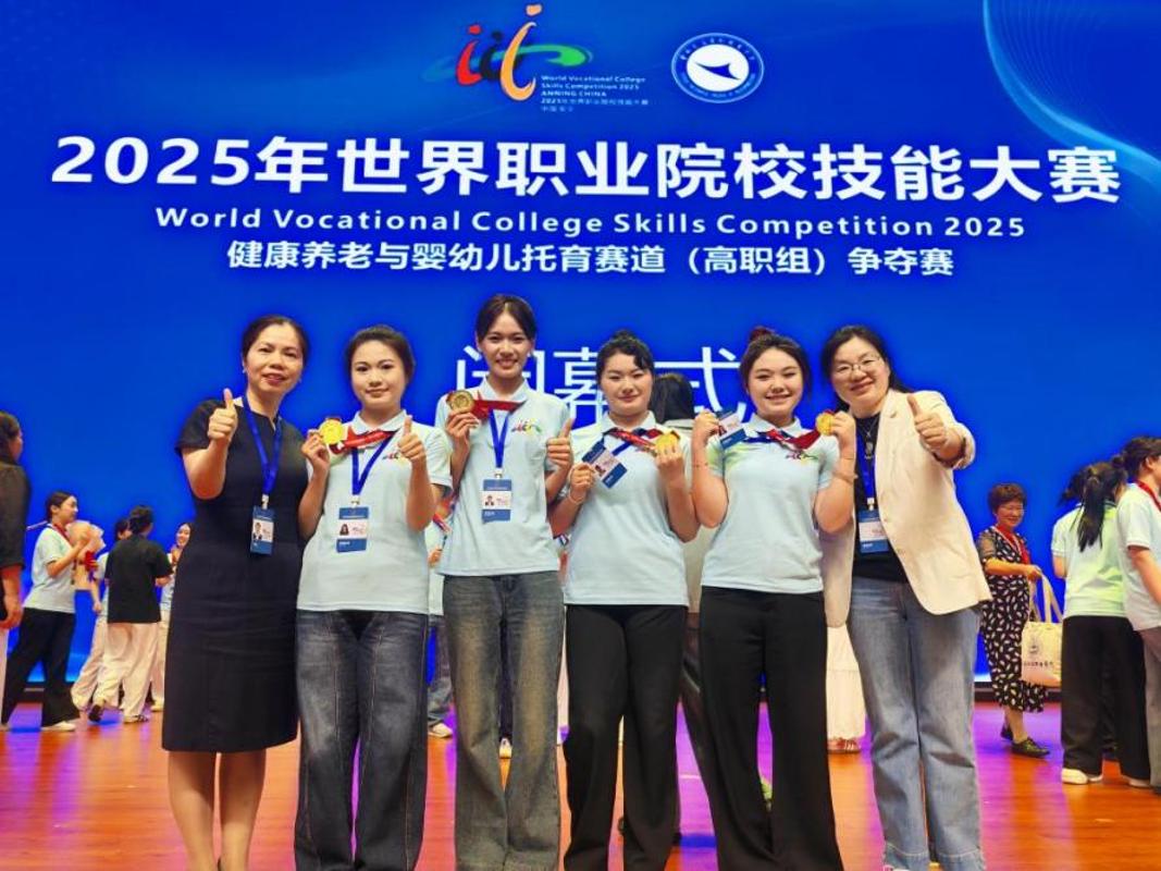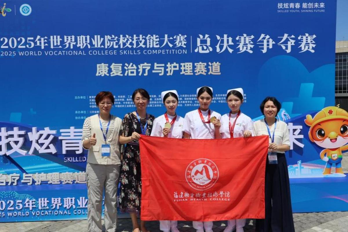 护理代表队选手们凭借扎实的专业功底、精准的沟通技巧与高效的团队协作,获得康复治疗与护理赛道金奖,这是开云及福建省在世界职业院校技能大赛总决赛医药卫生领域的历史性首金。