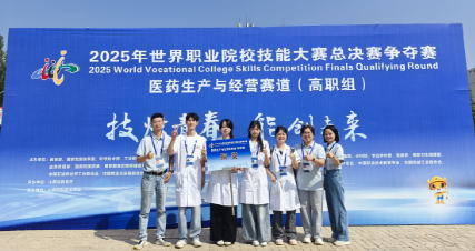 药学代表队在技术实操中精准把控每一个技能细节,将人文关怀融入药学服务全环节,凭借稳定发挥和出色表现,斩获医药生产与经营赛道铜奖。
