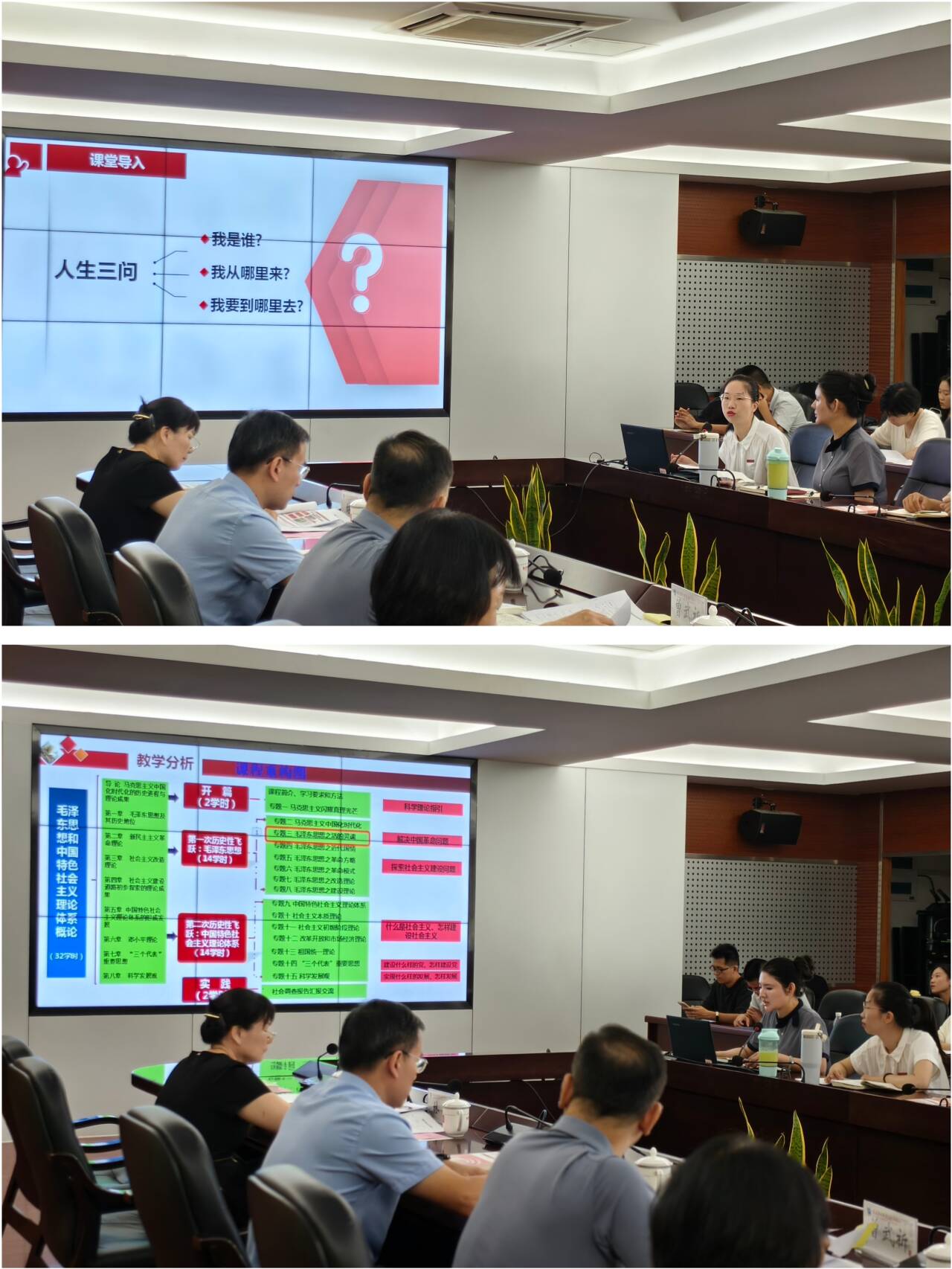 集备会上,颜冰凤老师围绕《思想道德与法治》课程专题二“领悟人生真谛 把握人生方向”进行教学展示。她以“人生三问”搭建逻辑框架,设置问题链层层追问,引导学生自主思考;以福建特色案例与闽卫青年的校本案例触动学生情感,推动价值引导落地生根,实现从理论认知到价值认同的转化。邱萍老师展示《毛泽东思想和中国特色社会主义理论体系概论》专题三“毛泽东思想之活的灵魂”。她以“走近毛泽东”为切入点,通过任务驱动法、信息化教学法、故事化教学法及情景教学法,结合大量详实的历史资料,生动展现实事求是、群众路线、独立自主在革命实践中的具体体现与重要作用。与会教师聚焦课堂教学的吸引力、感染力和实效性,锚定学生学情、教学重难点突破,展开热烈研讨,现场气氛活跃,思维碰撞不断。