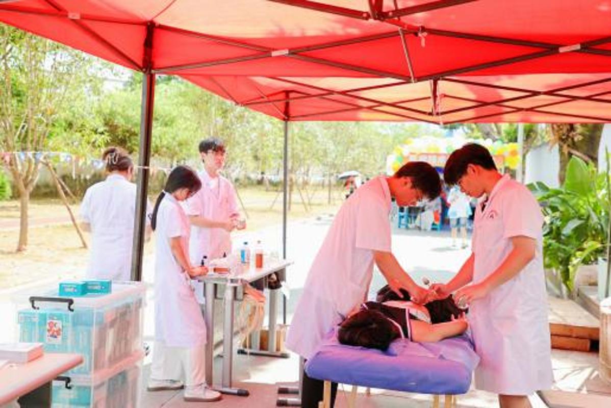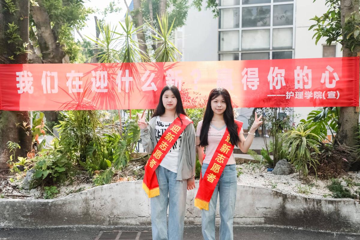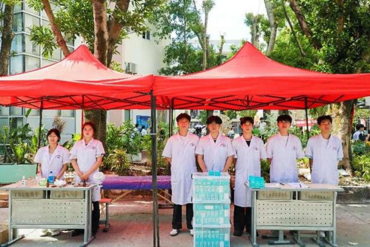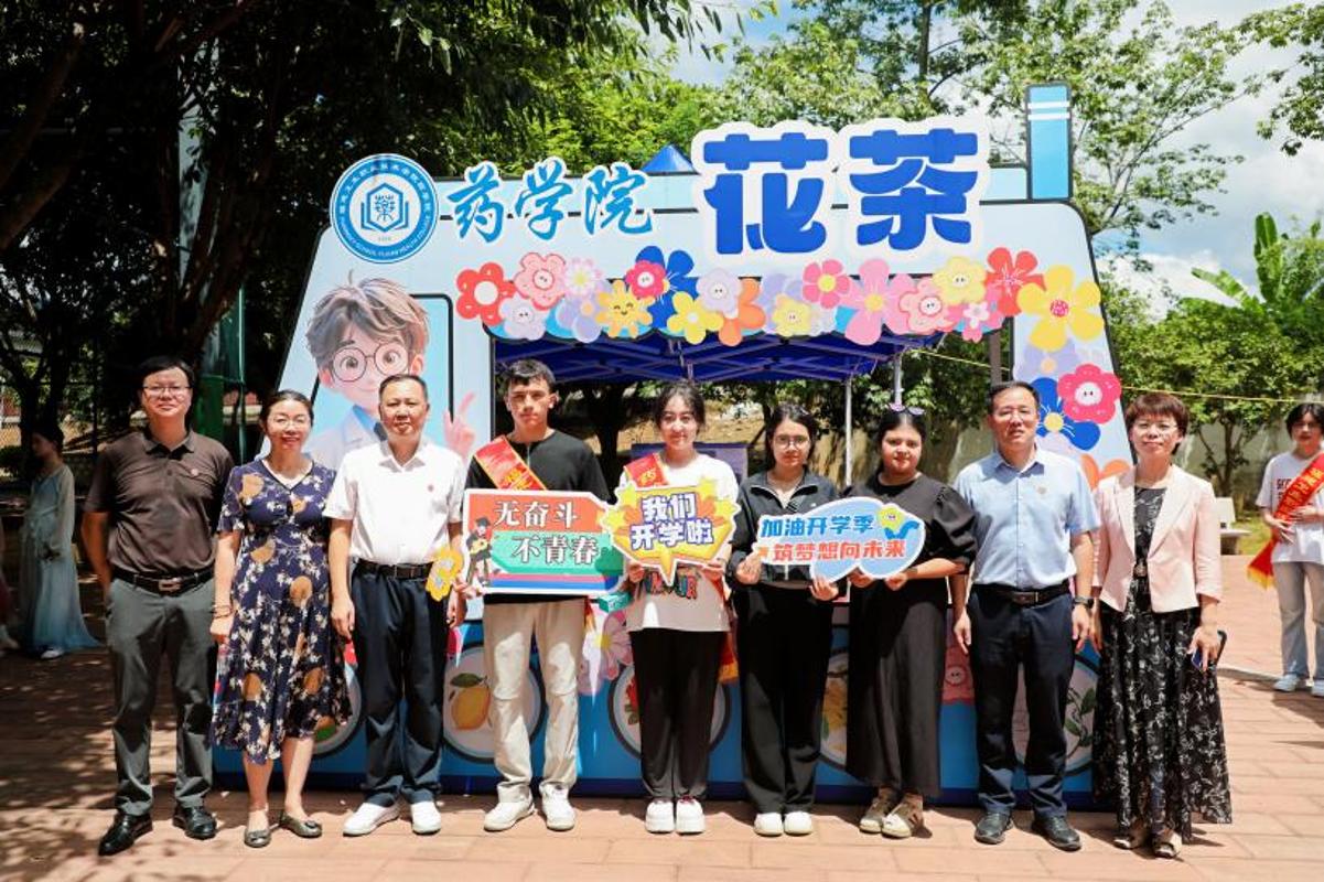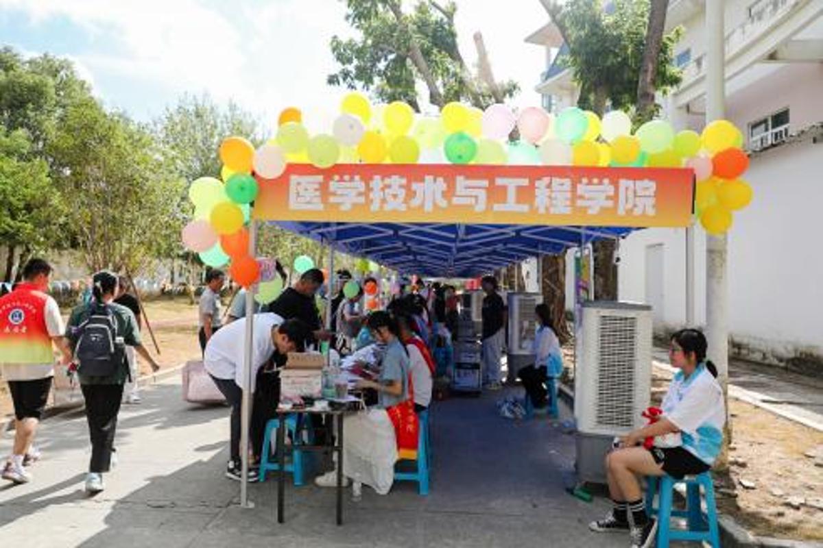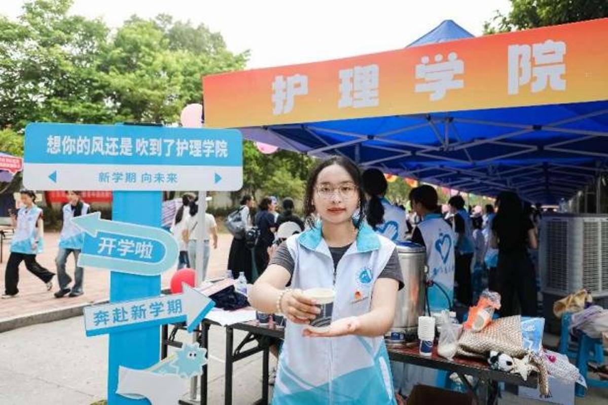 各学院迎新点更是将专业特色融入细节,让新生初遇便感知医学魅力。印有专业发展的展板诉说着传承,贴心准备的解暑凉茶和医疗保障彰显着“健康守护”的初心,让每一位新生都能感受到学院的专属温度。