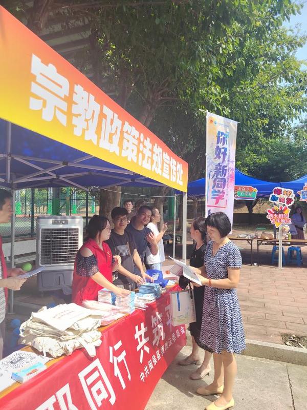 报到现场,学校组织统战部联合闽侯县委统战部设立宣传专区,通过展板展示、手册发放、现场答疑等形式,向新生普及民族宗教政策法规。