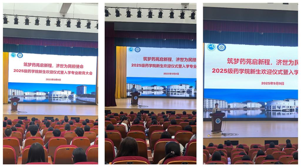 9月9日,药学院2025级新生欢迎仪式暨入学专业教育在崇学厅举行。学院领导、教师代表、行业劳模、优秀校友、辅导员以及全体新生共聚一堂,在庄重而温暖的氛围中,共同开启药学人生的新篇章。