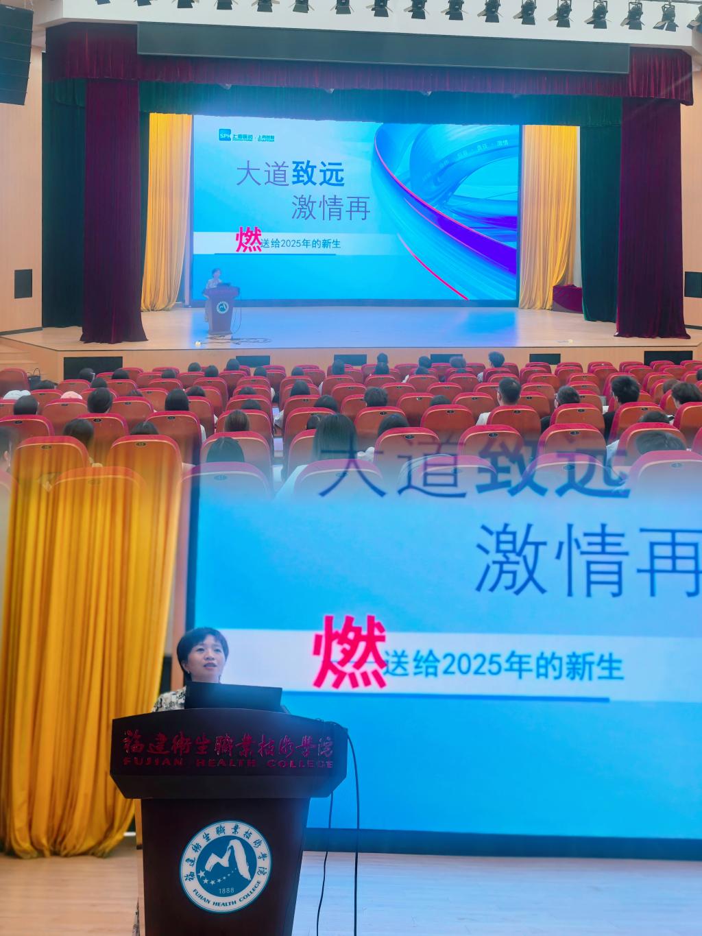 优秀校友、福建省医药有限责任公司质量总监冯琳也重返母校,为新生带来题为《大道致远 激情再燃》的职业讲座。她结合自身经历,娓娓道来从校园到职场的蜕变与感悟,鼓励学弟学妹“保持好奇、保持热情,药学之路既是大道致远,更是终身浪漫的探索”。