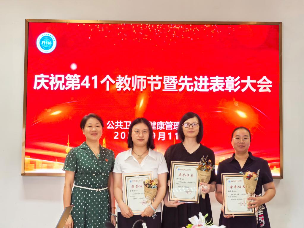 最后,举行了表彰仪式。朱扶蓉向全体教师致以节日的问候,充分肯定了健康学院近年来取得的办学成就和教师队伍的建设成效。她强调,教师是教育发展的第一资源,希望全体教师深刻认识肩负的责任与使命,以教育家精神为引领,争做“四有”好老师,当好“四个引路人”,为学校高质量发展和教育强国建设贡献更大力量。随后,她为荣获2025年度学校“教学名师”“三育人先进工作者”“优秀青年教师”称号的教师们颁发荣誉证书。三位获奖教师代表结合自身从教经历,分享了她们在教学科研、管理服务、学生指导等方面的感悟与体会。她们以生动的事例讲述了如何以爱心、耐心和责任心践行育人使命,如何通过不断创新教学方法提升教学质量,以及如何在团队协作中共同成长。她们的发言情真意切,充分展现了新时代教师的风采与担当,用实际行动诠释了师道的真谛,为全院教师树立了学习的榜样。