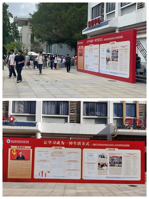 9月25日上午,学生服务中心门口格外热闹——继续教育学院在此举办的终身教育成果展正式拉开帷幕。现场,一块10米长的展板格外醒目,其简洁明快的设计风格与突出的主题相得益彰,清晰呈现出学校在终身教育品牌打造、职业技能培育、社会服务开展及社区教育推进等方面的亮眼成绩。路过的不少师生被展板内容吸引,纷纷驻足细看、交流讨论。大家对展出的成果给予高度认可,认为这种直观的展示方式,不仅让大家更深刻地理解了终身教育的内涵,更点燃了将所学知识运用到今后学习与工作中的积极性,为校园里的终身学习氛围再添一抹亮色。