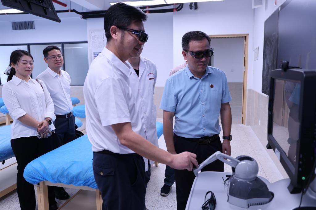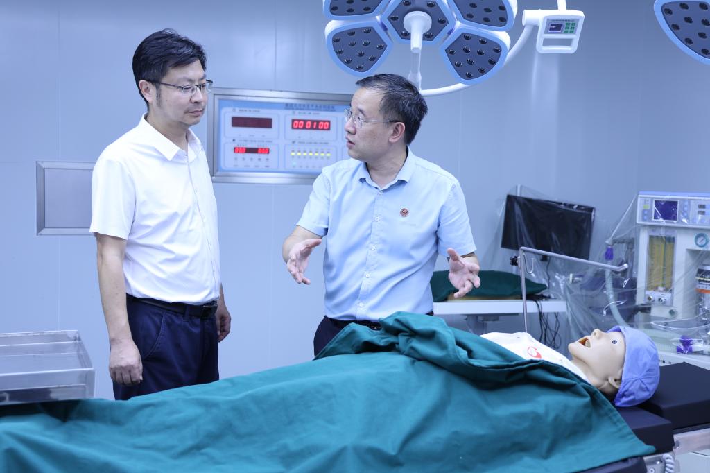 会后,邓赟一行参观了学校现代康复实训中心、针灸推拿实训中心、手术中心及其他校园设施。