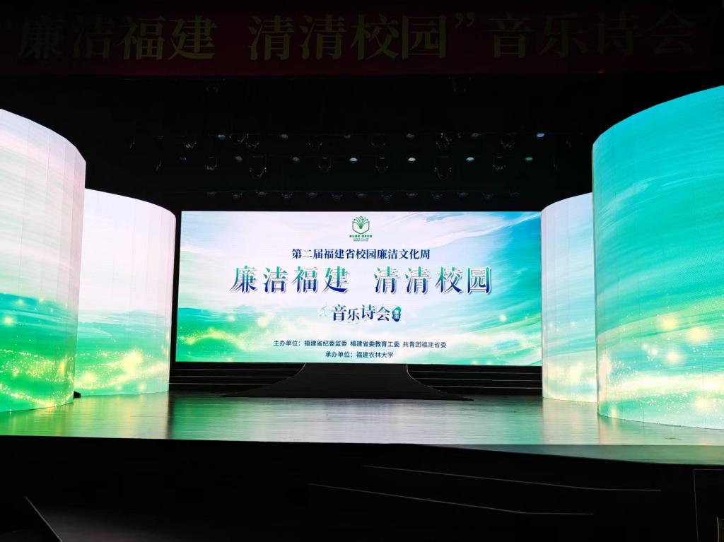 10月24日晚,由福建省纪委监委、福建省委教育工委、共青团福建省委联合主办的第二届福建省校园廉洁文化周之“廉洁福建·清清校园”音乐诗会在福建农林大学举行。校党委书记曾武祈、纪委书记林玲到场观看。