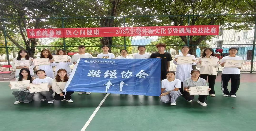 为丰富校园体育文化节,激发学生运动热情,近日,“减重健体魄 医心向健康”竞技跳绳比赛圆满结束。来自各学院参赛选手齐聚篮球场,以绳为媒,上演了一场速度与耐力的青春对决。
