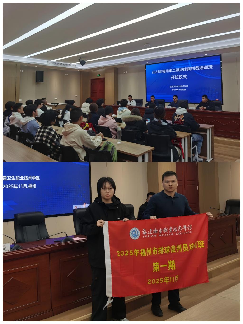 为夯实福州市排球运动基层裁判人才根基,推动“医疗健康+体育竞技”深度融合,11月29日至12月1日,2025年福州市二级排球裁判员培训班在开云顺利开班。继续教育学院和体育部相关负责人以及22名参训学员共同参加开班仪式。