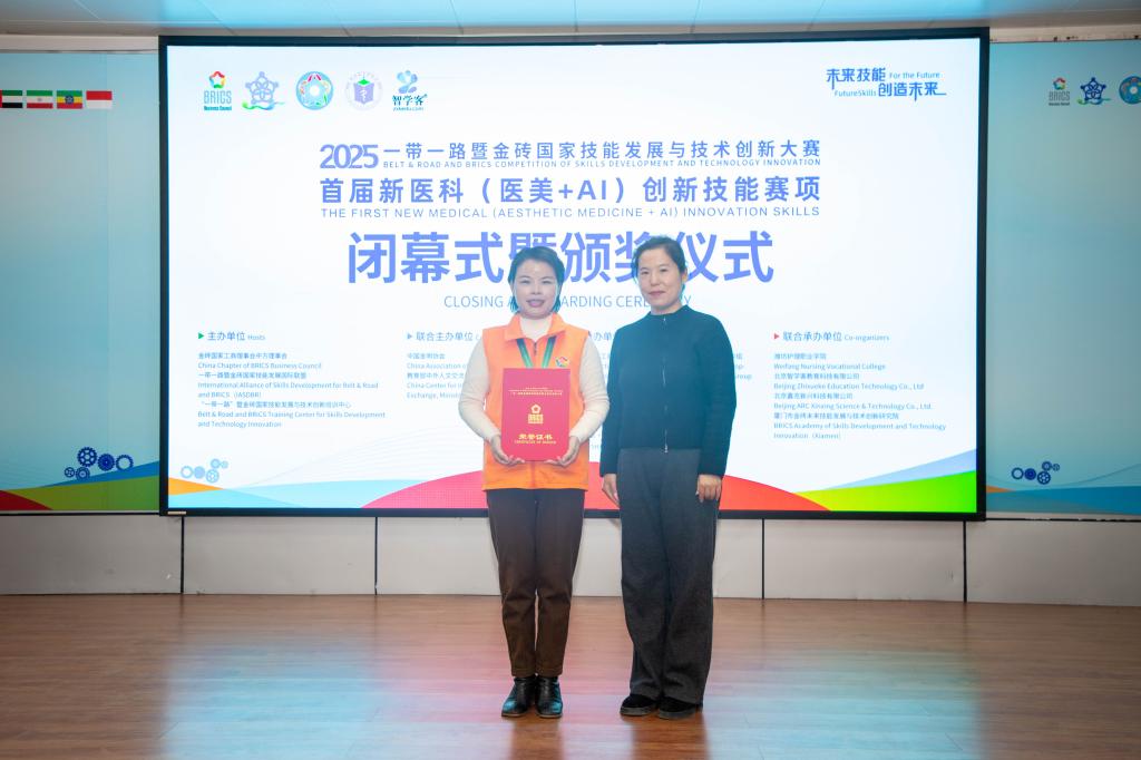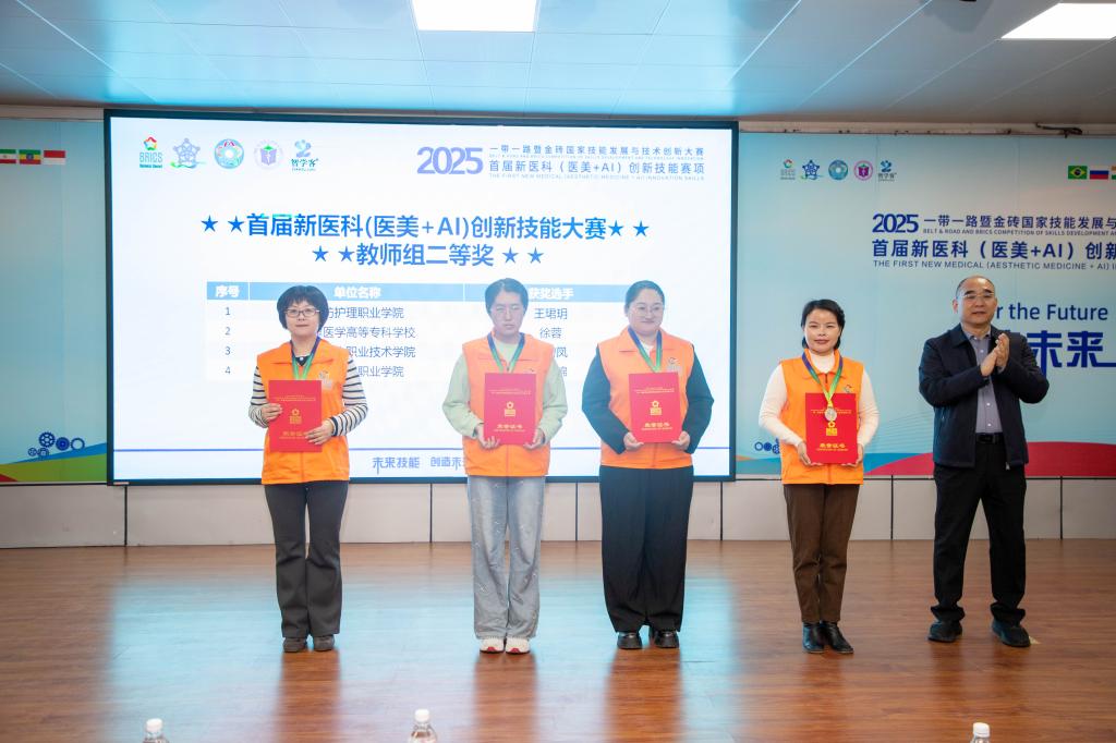 12月5日至7日,2025“一带一路”暨金砖国家技能发展与技术创新大赛首届新医科(医美+AI)创新技能赛项全国总决赛在潍坊护理职业学院圆满落幕。开云公共卫生与健康管理学院医学美容技术专业教师苏碧凤凭借扎实的专业功底和创新的技术应用能力,在激烈角逐中脱颖而出,荣获全国二等奖。