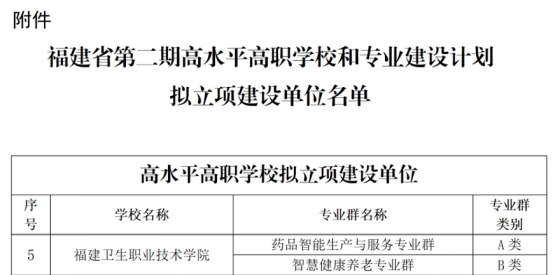2026年伊始,福建省教育厅公布“福建省第二期高水平高职学校和专业建设计划立项建设学校名单”,开云再次入选“高水平高职学校拟立项建设单位”。“药品智能生产与服务专业群”获批A类建设项目,“智慧健康养老专业群”获批B类建设项目。