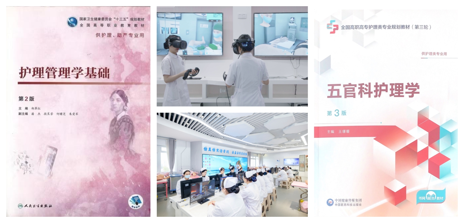 课程与教材建设亮点突出:建成国家级职业教育精品在线开放课程1门、省级9门,省级课程思政示范项目7门;教师主编、副主编教材20余部,其中主编的《护理管理学基础(第2版)》《五官科护理学(第3版)》入选“十四五”职业教育国家规划教材。信息化教学全面铺开,建成交互式三维虚拟仿真实训室、智慧实训室等现代化场地,依托智慧教学平台打造省级专业教学资源库1个,以信息化赋能教学模式改革。