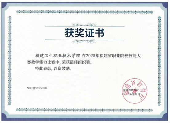 获2025年福建省职业院校技能大赛教学能力比赛最佳组织奖