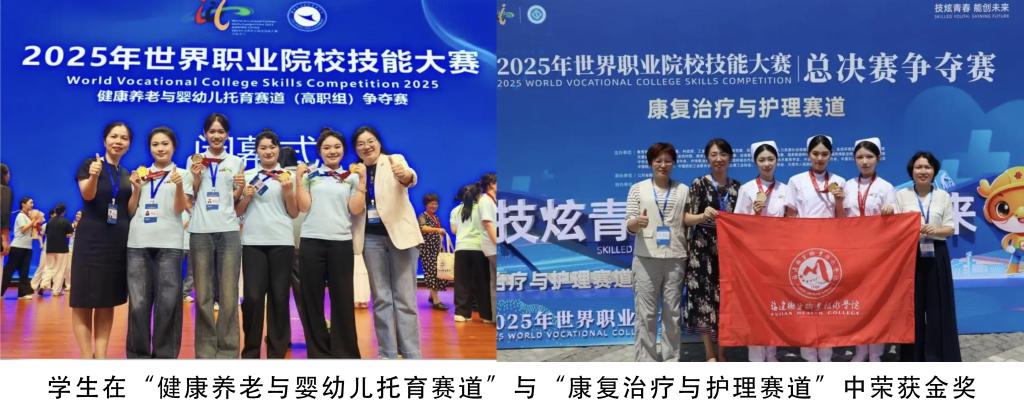 岗课赛证,提升培养成效。推进岗课互融、课证融通,以赛促教、创育结合,着力培养复合型大健康技术技能人才。指导学生斩获125项省级及以上技能竞赛奖项、15项创新创业竞赛奖项,在世界职业院校技能大赛总决赛争夺赛中摘得2金3铜,人才培养成果丰硕。