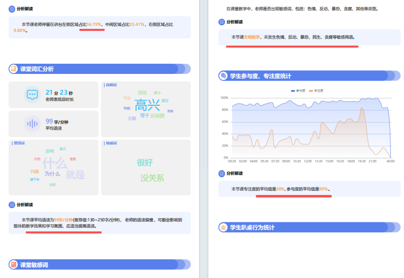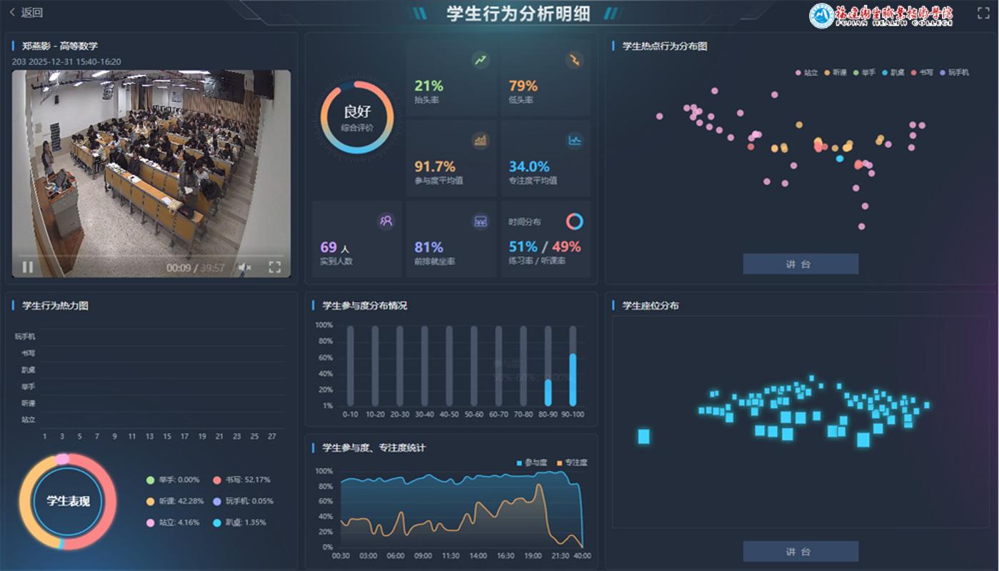 我们还推动“空间+课程+评价”一体化改革,推行“学生实时评价+教师自评+同行互评+督导反馈”四位一体机制,教室使用数据接入教学评价系统,系统自动生成“课堂分析报告”。