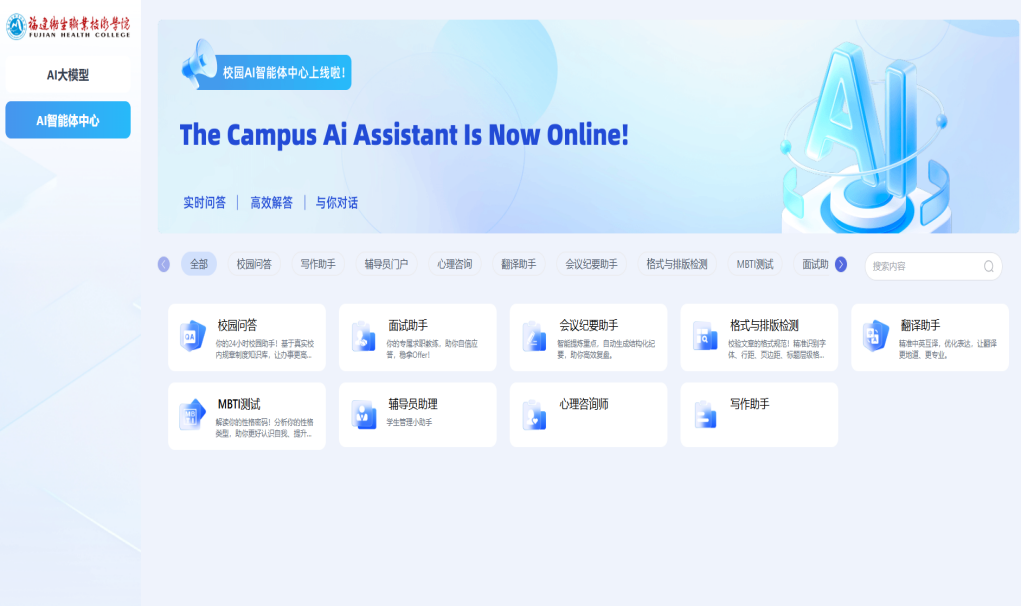 “十四五”期间,我们打破壁垒,建成校级全量数据中心,汇聚2亿+条业务数据,覆盖教学、管理、服务、生活全场景。制定“一数一源、一源多用”标准,让数据“归一、归准、归活”,为对接教育部“职业院校数字基座”打下坚实基础。更重要的是,我们为每一位师生描绘了一张个性“画像”,使得数据不再是冷冰冰的表格,而是有温度的成长轨迹。围绕“方便师生、提升体验”,升级校园融合门户,上线“一网通办”服务平台,整合各项事务,学生只需打开微信服务号,就能完成各项事务。此外,上线AI智能体门户,集成AI助教、智能答疑、课件生成、心理陪伴、面试模拟等6类教育智能体,提升教师备课效率,让学生学习办事有了“私人助手”。