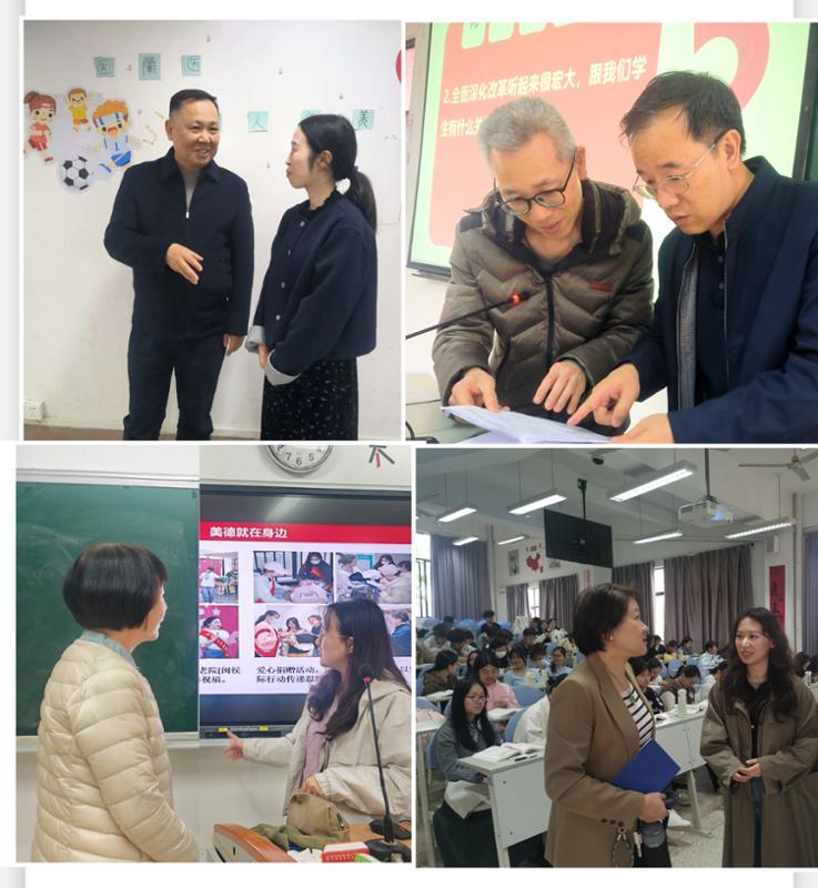校思政课教学指导组组长、校党委书记曾武祈,组长、校长徐伟,副组长、校党委副书记李美华,副组长、副校长朱扶蓉深入课堂,对《习近平新时代中国特色社会主义思想概论》《思想道德与法治》《形势与政策》课堂教学进行听课,掌握一线思政课堂教学动态,实现了本学期三门思政主干课听课全覆盖。校领导们深入课堂,全程专注听课,细致了解课堂实效,充分彰显了学校对思政课建设的高度重视,以及落实教育部思政课提升行动的坚定决心。