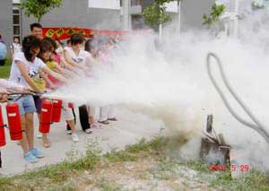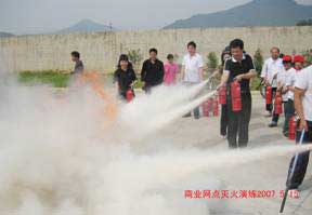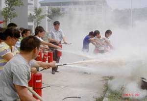 6.为促进商业网点、食堂全体职工对消防知识的了解,提高消防安全意识,保护人身安全,将损失减少到最低限度, 2007年5月15日下午,保卫处组织进行灭火器使用培训和现场油盆灭火演练,共使用灭火器70个,参加人数近百人。