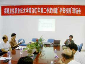 8.2007年6月19日学院在药学系召开第二季度“平安校园”现场会,会上药学系欧春木书记就系部如何开展创建“平安校园”、“平安系部”和取得的成效作了详细的介绍。学院分管安全工作的领导陈雄同志传达省委教育工委关于《全省高校稳定排查工作会议》精神,最后院临时党委副书记魏立娜同志就如何开展学院安全稳定排查工作作了重要指示,并强调校园安全工作要齐抓共管,为创建和谐氛围,打造品牌校园共同努力。